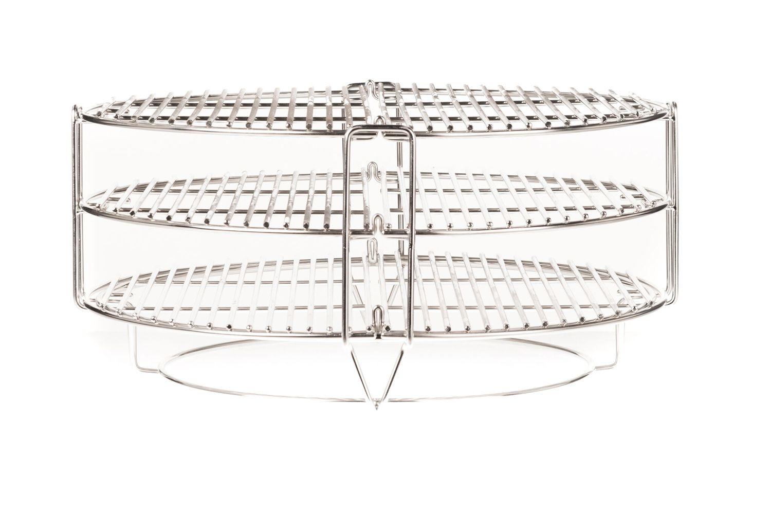 - Divide and Conquer Cooking System with half-moon stainless steel cooking grids